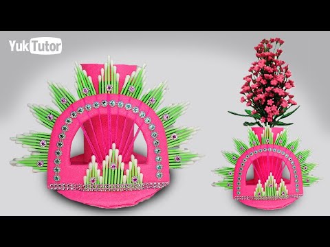 Ide Kreatif Kreasi vas bunga How to make flower vase Cotton ear buds flower vase Durasi : 11:26